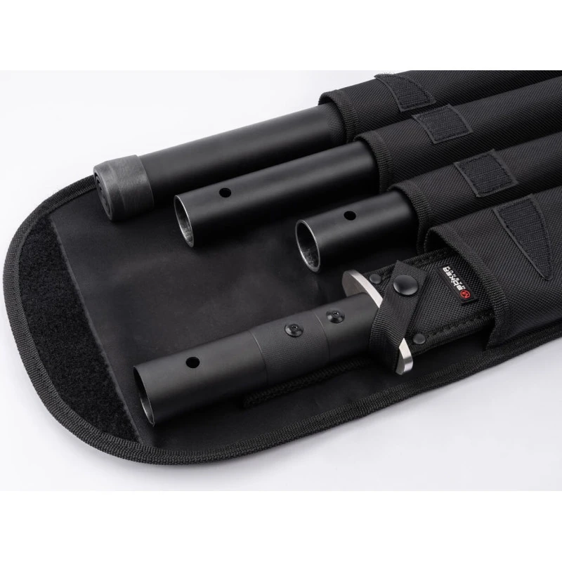 Cet épieu démontable se compose d’un couteau amovible et de trois segments cylindriques à assembler, longs de 50,5 cm. Cette conception offre une meilleure flexibilité, ainsi que la possibilité de tenir le couteau directement dans la main pour couper du bois, des cordes, du gibier. Le dernier segment se complète d’une butée caoutchouteuse, qui peut fournir un soutien pendant vos promenades en forêt.