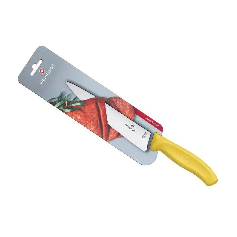 Ce couteau à découper Victorinox SwissClassic 6.8006.19, sur carte, est doté d’un manche en polypropylène pour l’ergonomie, qui plus est coloré afin d’apporter une touche de couleur dans votre cuisine! Vous aurez le choix entre différents coloris : jaune, vert, rose ou orange. Chaque poignée colorée en PP est discrètement marquée par la croix Suisse Victorinox, le petit détail qui va faire fondre les fans !