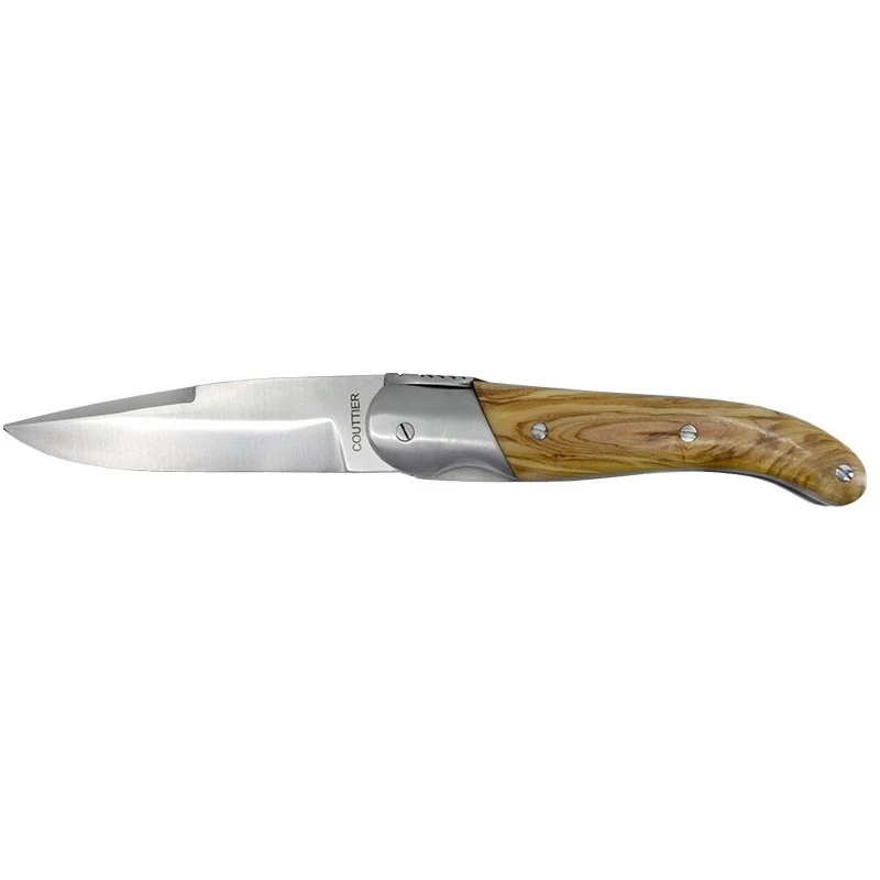 IdĂ©al pour les activitĂ©s Outdoor, notamment la chasse, ce couteau pliant Ă verrouillage liner lock se distingue par sa lame de 4mm d’Ă©paisseur. Elle mesure 105mm de longueur et s’avère ĂŞtre fabriquĂ©e en acier 12C27, sur laquelle on peut apercevoir l’inscription « Couttier ».