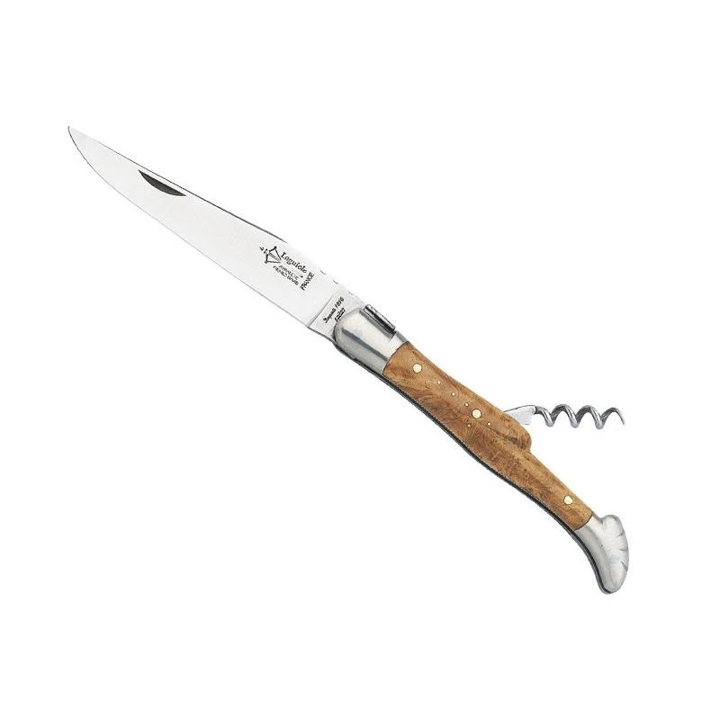 Ce couteau Laguiole G.David 6212 possède deux pièces, une lame en acier inoxydable 12C27 ainsi qu’un tire-bouchons. Il apporte du tranchant tout en vous permettant d’ouvrir facilement les bonnes bouteilles. Pour information, l’outil tire-bouchons est situé au niveau du manche en bois genévrier de longueur 12cm avec 2 mitres mates en inox et ressort guilloché. D’une très grande qualité, ce couteau de poche est assemblé de façon artisanale par la coutellerie Laguiole Arbalète Genès David. Une coutellerie au savoir faire inimitable qui perdure depuis plus de deux siècles !