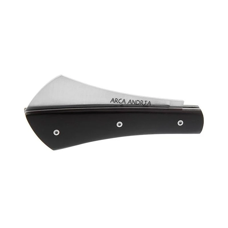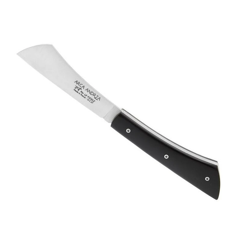 Parfaitement adapté pour le jardinage ou la cueillette, le modèle Arca Andrea Le Fidèle se démarque par son design courbé. Le plein manche est fait de bois ébène à la teinte sombre, proche du noir, et mesure 105mm de longueur pour faciliter le transport au quotidien. Faite en acier inoxydable 12C27, la lame est enrichie d’une décoration « Arca Andrea » : elle s’avère être tranchante et résistante à la corrosion/rouille. Mécanisme cran forcé, fabrication française, livré avec une pochette de couleur noire.