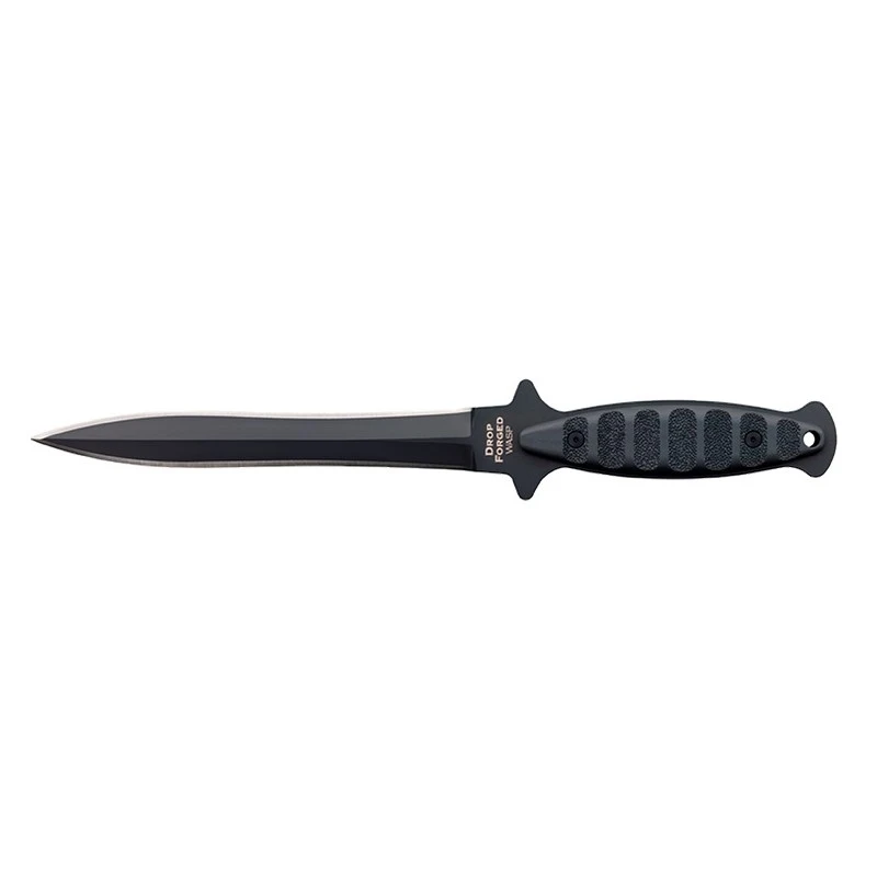 Le Cold Steel Drop Forged Wasp est une dague Ă double tranchant fabriquĂ©e Ă partir d’une seule pièce d’acier carbone 52100. Cela lui vaut une excellente soliditĂ©, avec une forte capacitĂ© Ă ne pas flancher face aux Ă©preuves qui l’attendent !