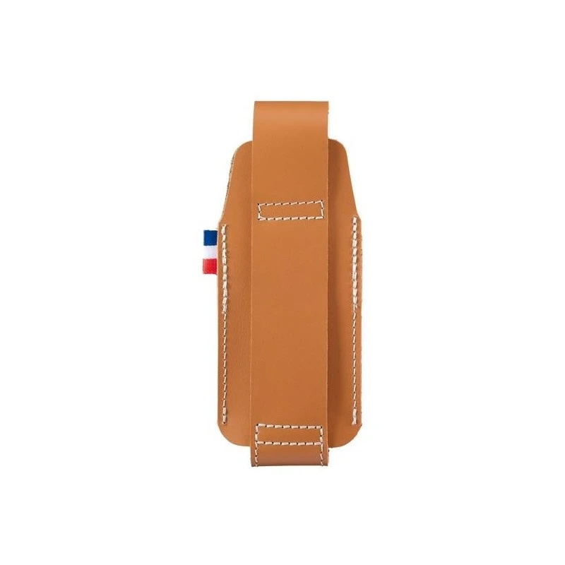 Le cuir fauve utilisé pour sa fabrication est non seulement durable mais aussi agréable au toucher, il provient d’une tannerie italienne. Le passant-ceinture intégré permet un port vertical pratique, assurant que votre couteau soit toujours à portée de main tout en restant sécurisé.