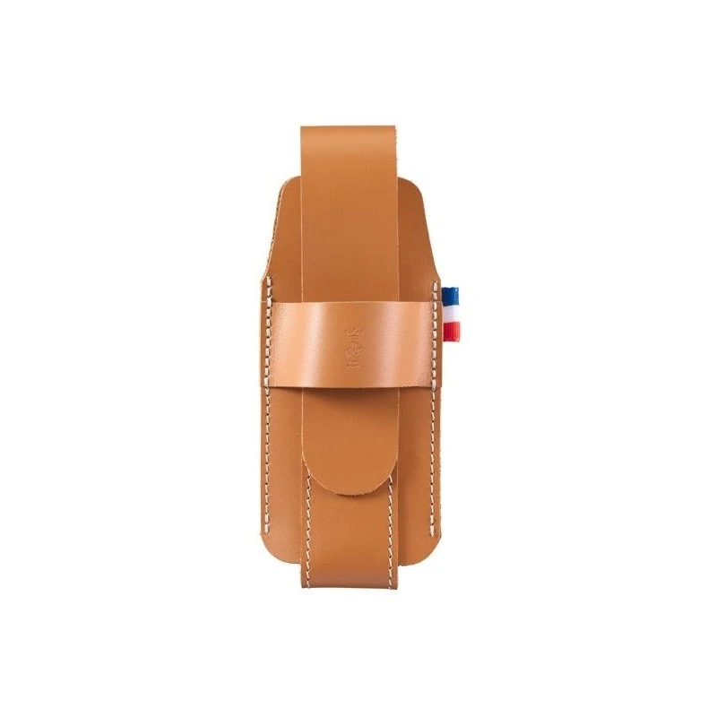 Cet étui en cuir fauve, conçu par le studio BIG-GAME et fabriqué en France, en Savoie, est idéal pour transporter et protéger vos couteaux fermants Opinel. Compatible avec les modèles N°7, 8, 9, ainsi que les effilés N°8 et 10, il assure une protection optimale tout en ajoutant une touche d’élégance.