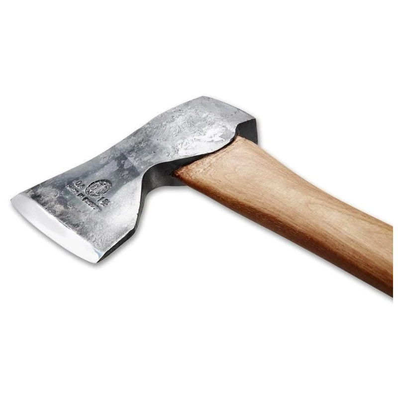 Le modèle Stalberg de la marque suédoise Hultafors est parfaite pour les charpentiers professionnels, et plus généralement pour tous les artisans qualifiés. Sa longue et fine tête dispose d’un tranchant droit avec émouture scandinave, affûté et poli, avec un rétrécissement à côté du manche, pour pouvoir positionner fermement la main au-dessus du centre du tranchant. Cela fait davantage gagner en précision. La lame est forgée à la main en acier Suédois dans la réputée forge de Hults Bruk.